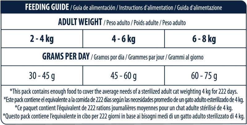 *Kısırlaştırılmış kedileri obeziteye karşı koruma: azaltılmış metabolize edilebilen enerji seviyesi, tokluk hissi veren yüksek lif seviyesi, kas dokusunu korumak için yüksek protein ve ideal yağ seviyeleri.