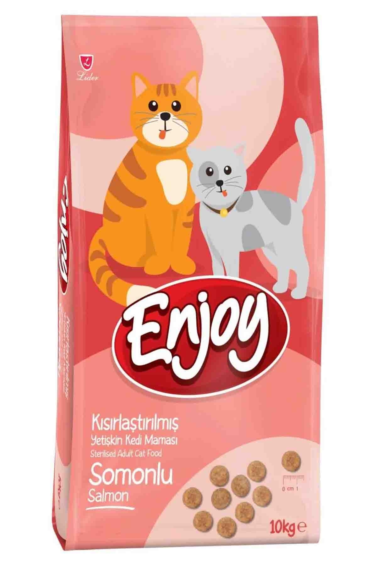 Enjoy somonlu kısırlaştırılmış kedi maması; Kısırlaştırılmış kedilerin tüm besin ihtiyaçlarına göre formüle edilmiştir. Kedi maması; İçerdiği vitamin ve mineraller kedinizin güçlü bağışıklık sistemine, sağlıklı deri ve parlak tüylere, sağlıklı iskelet ve dişlere sahip olmasını sağlamaktadır. Aynı zamanda bağırsak sağlığına da destek vermektedir. Kısırlaştırılmış kedi maması, özenle seçilmiş malzemelerin dikkatli bir şekilde işlenmesiyle hazırlanmıştır.