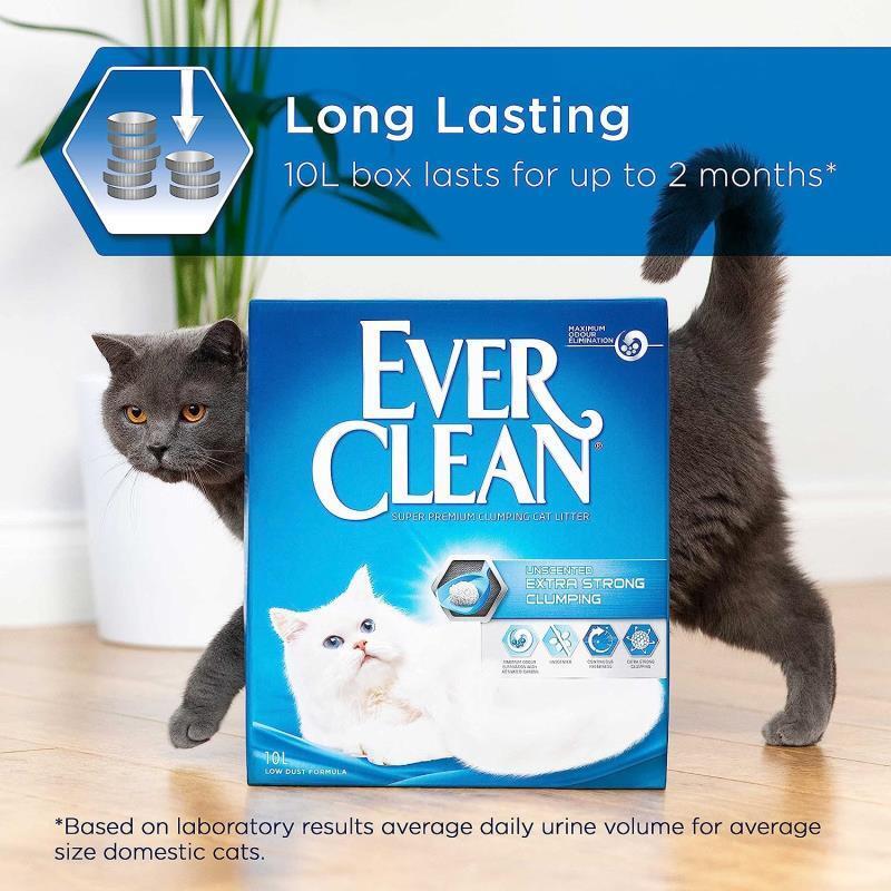 Ever Clean Extra Strong Kokusuz Kedi Kumu 10 Lt Ever clean kedi kumu Kokuya duyarlı kedi ve insanlar için kokusuz olarak özel formüle edilmiş, güçlü koku gideren formüllü, topaklaşan doğal bentonit kedi kumu . Ever clean kedi kumları daha küçük kum granülleri sayesinde ekstra güçlü topaklanma sağlamakta olan kedi kumudur.