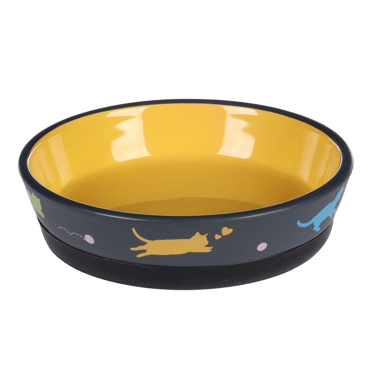 Flamingo Rantı Kedi Desenli Seramik Mama ve Su Kabı