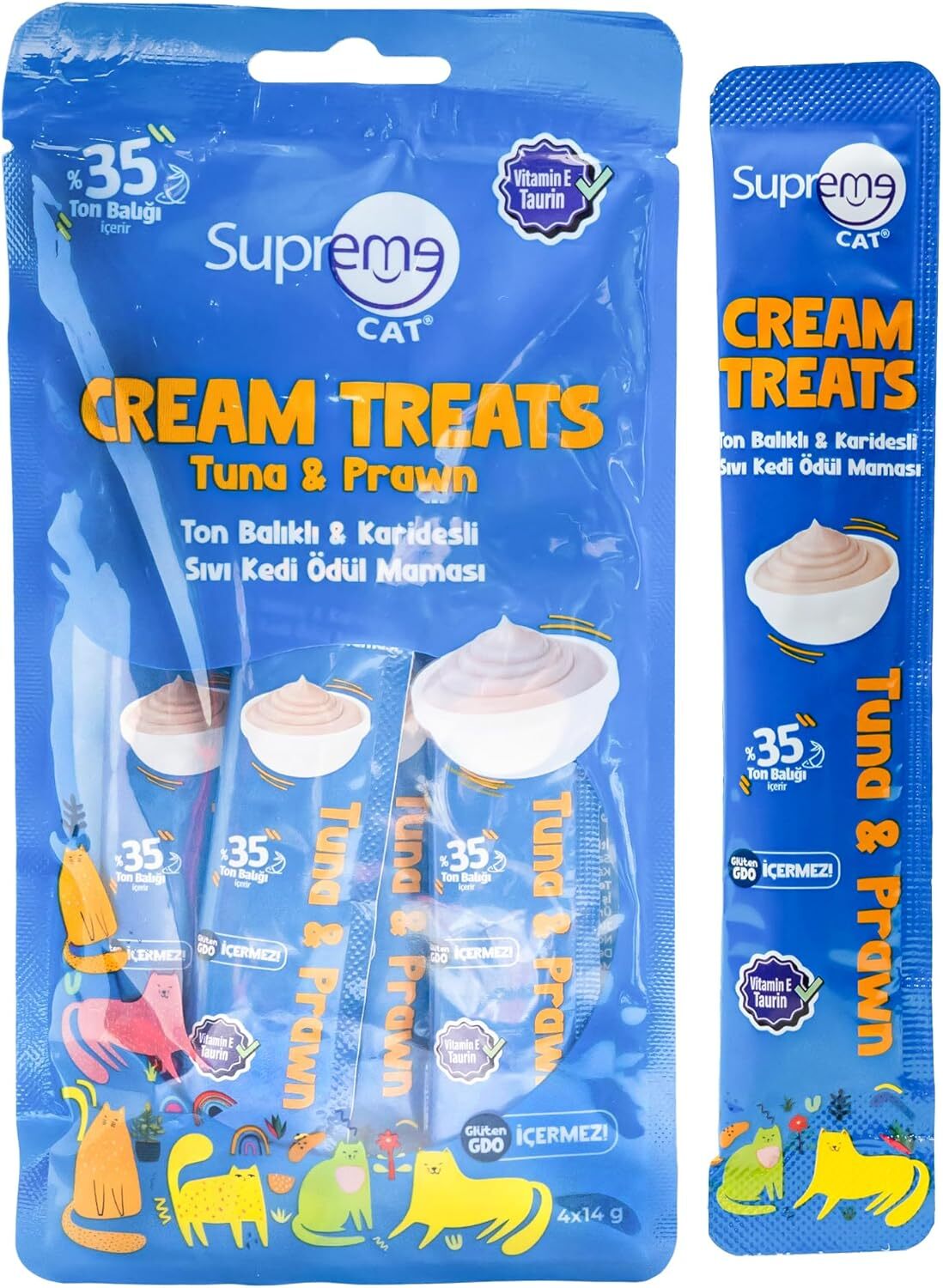 Supreme Cat™ Ton Balıklı & Karidesli Sıvı Kedi Ödül Maması, kedinizin günlük beslenmesine katkı sağlamak için özel olarak formüle edilmiştir. %35 ton balığı, %20 tavuk göğsü ve %5 karides içeriğiyle kedinizin damak tadına hitap eder ve her öğüne lezzetli bir çeşitlilik katar. Kediniz için besleyici ve lezzetli bir ödül alternatifi sunar.